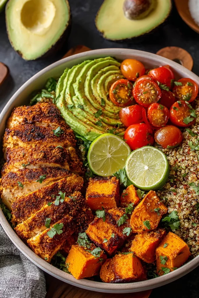 I vividly remember the first time I experimented with blackened seasoning—it felt like unlocking a secret door to flavor town. The combination of paprika, garlic, onion powders, and a touch of cayenne makes every bite come alive. Pair that with sweet potato cubes that are roasted until tender and slightly crisp, a fluffy bed of quinoa or brown rice, and the creamy coolness of avocado, and you’ve got yourself a balanced masterpiece. Toss in juicy cherry tomatoes, a sprinkle of fresh cilantro, and a squeeze of lime, and suddenly you’ve elevated weeknight dinner into an at-home gourmet experience. This bowl is perfect for lunch or dinner, and trust me, once you dive into those layers of flavor, you’ll be reaching for more. So grab your apron, crank up the oven to 425°F, and let’s embark on this delicious journey together!