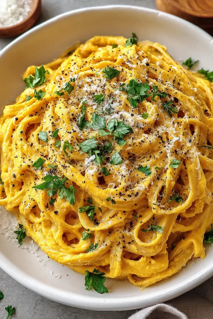 This creamy pumpkin Alfredo pasta combines velvety fettuccine with rich pumpkin puree, garlic, and Parmesan for a delightful fall-inspired meal that warms the soul.