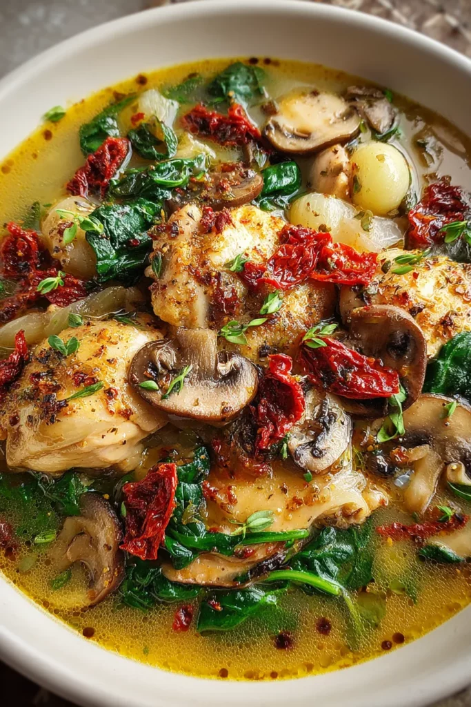 Rich and hearty, this soup features tender chicken, earthy mushrooms, and fresh spinach, all enveloped in a creamy broth. Perfect for a cozy evening or impressing loved ones!