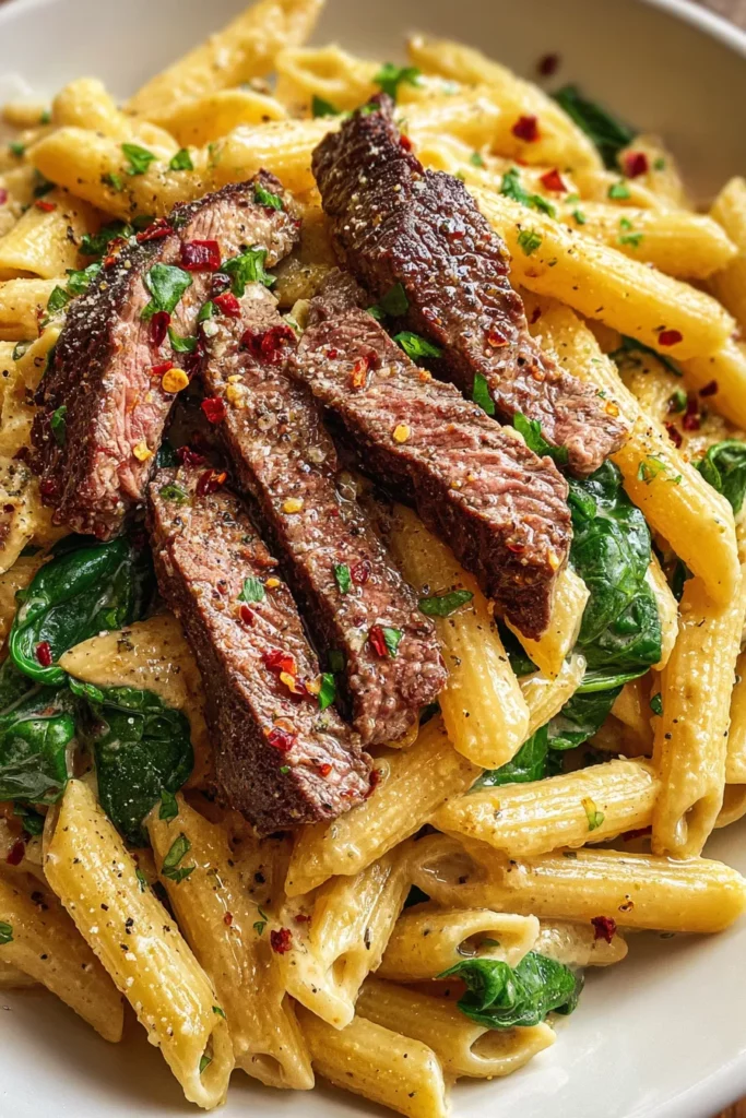 Bringing this dish to life is straightforward and incredibly rewarding. You’ll start by searing the steak to lock in juices, then build a garlic-infused butter sauce that turns luxuriously creamy with heavy cream and Parmesan. Finally, the pasta cooks right in the sauce, so it thickens as it absorbs all those savory flavors. Follow these steps for a fuss-free, restaurant-style meal at home: