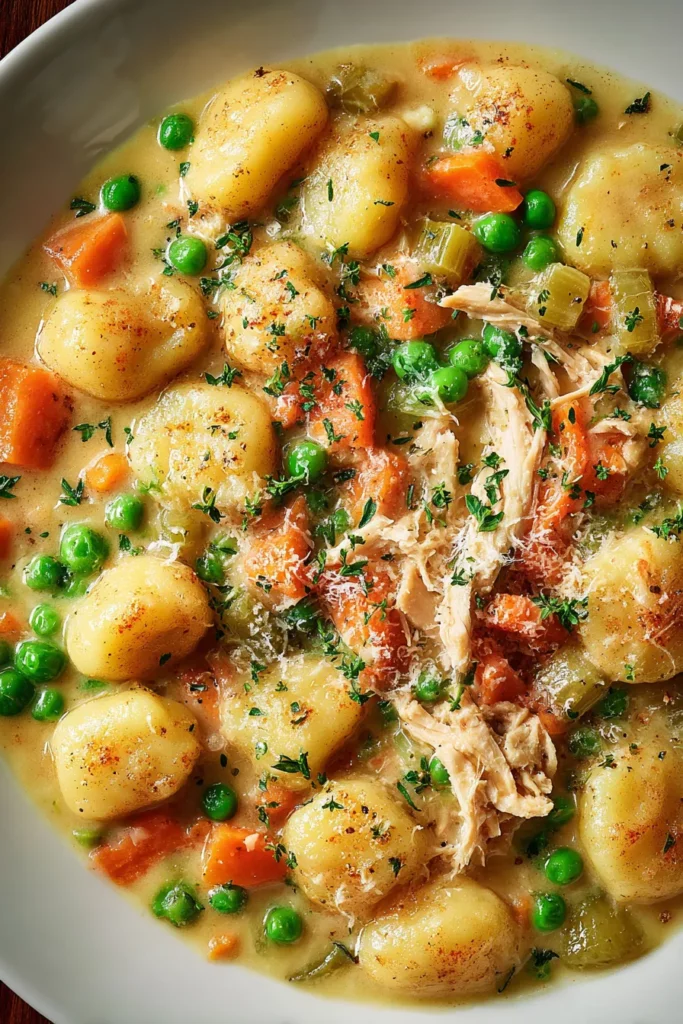 Every spoonful transports you to a place of comfort: savory herbs, a hint of nutmeg, and the gentle tang of Parmesan all come together in perfect harmony. This recipe captures the spirit of a classic chicken pot pie, but swaps out the heavy crust for pillowy gnocchi that cooks right in the pot. It’s rich, creamy, and hearty—everything you crave in a comfort food masterpiece. I still remember the first time I whipped this up for my family; my kids kept sneaking back for more, and my partner insisted on seconds. Whether you’re cooking for one or feeding a crowd, this one-pot wonder is guaranteed to become a go-to. So grab your Dutch oven, roll up your sleeves, and let’s dive into a dish that turns simple ingredients into a soul-satisfying feast.