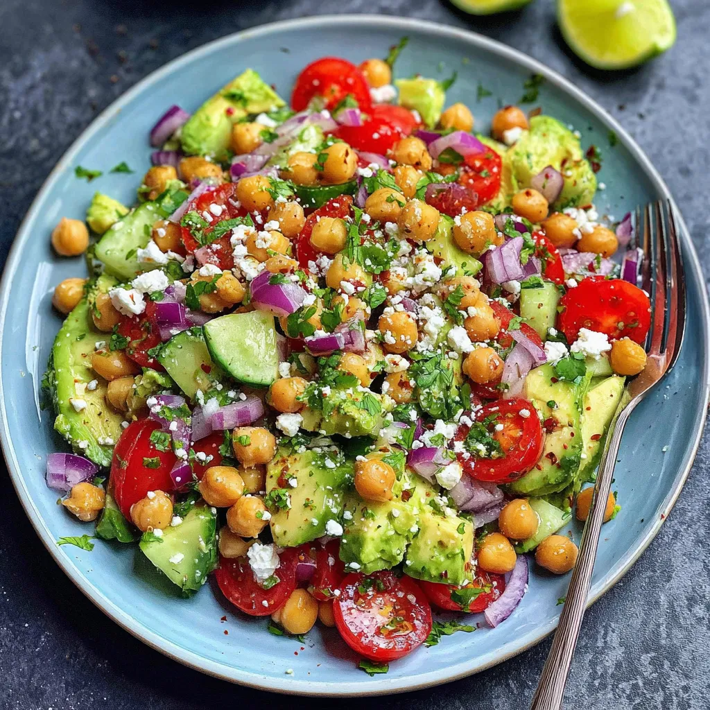 Nailing the balance of textures and flavors in this salad is all about fresh ingredients and gentle handling. Keep your avocado just ripe enough to hold its shape, and don’t rush the resting time—those 10 minutes let the lime juice soften the chickpeas and mellow the onion’s bite. Feel free to tweak it to your mood: more lime for brightness, extra cilantro for herbal zing, or a bolder salt level if you’re adding feta. This salad is a blank canvas for customization and always rewards a little extra care!