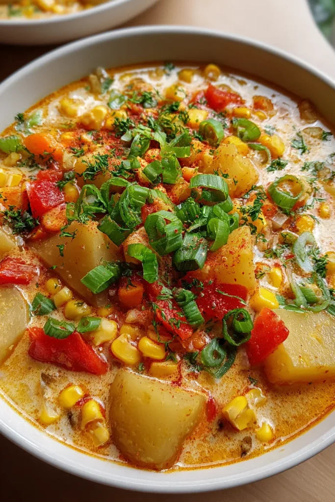 Bringing this Smoky Vegan Corn Chowder with Potatoes from your kitchen to your table is like sharing a warm, flavorful story that everyone at the table gets to taste. We’ve covered everything from the vibrant roles of each key ingredient, through the step-by-step art of building flavors in your pot, to clever ways of serving and storing those delightful leftovers. This beginner-friendly recipe only demands 15 minutes of hands-on preparation, 30 minutes of simmering, and a brief 10-minute rest—yet it delivers a bowl of rich, smoky, and creamy comfort that feels like it took a chef’s lifetime to perfect. With just 300 calories per serving, it’s a guilt-free treat that nourishes both soul and body.