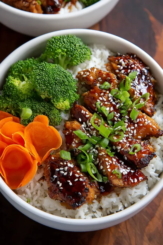 Serve warm, and enjoy your Teriyaki Chicken Rice Bowl!