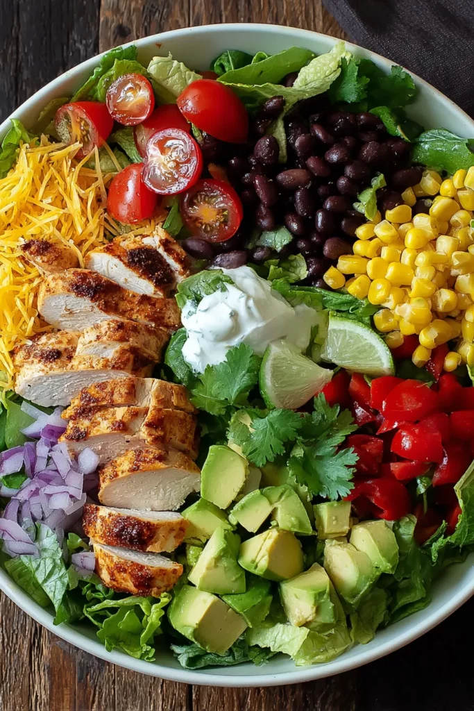 In this article, we’ve explored every aspect of preparing the Zesty Southwest Chicken Salad Bowl, from selecting the freshest ingredients to mastering the perfect bake on your chicken and whipping up that irresistibly tangy dressing. This colorful recipe is designed for cooks of all levels, boasting beginner-friendly steps, a total preparation time of 15 minutes, and a cooking time of just 25 minutes plus a brief 5-minute rest. Whether you’re craving a hearty lunch to power you through the afternoon or seeking a light yet satisfying dinner option, this salad has you covered with roughly 550 calories per serving and a balance of lean protein, fiber-rich vegetables, and healthy fats. We emphasized the role of each ingredient—crisp greens, sweet corn, creamy avocado, and bold taco spices—so you can appreciate how every element contributes to a harmonious flavor profile. Feel free to print this article or save it for later reference, ensuring you can recreate this vibrant bowl whenever the mood for a zesty, nourishing meal strikes. This article serves as a standalone guide, combining detailed instructions, ingredient insights, and creative ideas—all structured so you can dive right in without feeling overwhelmed. With everything laid out in clear Markdown formatting, printing or saving becomes effortless, letting you keep this recipe close at hand whenever you want a tasty kitchen win.